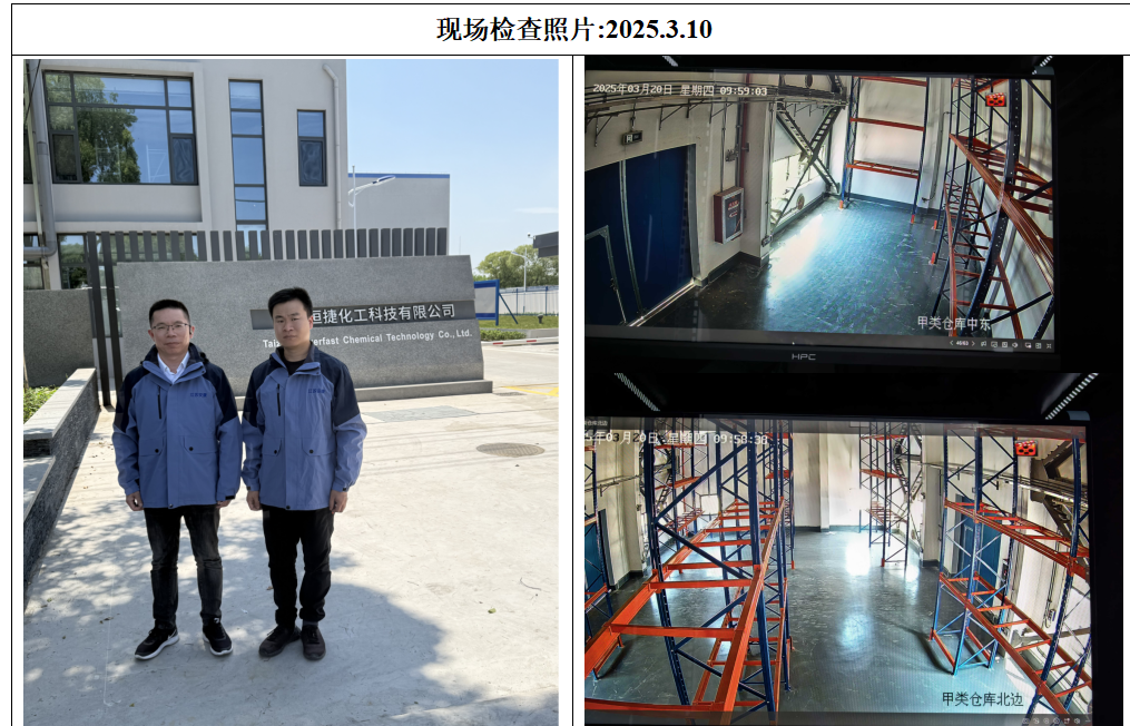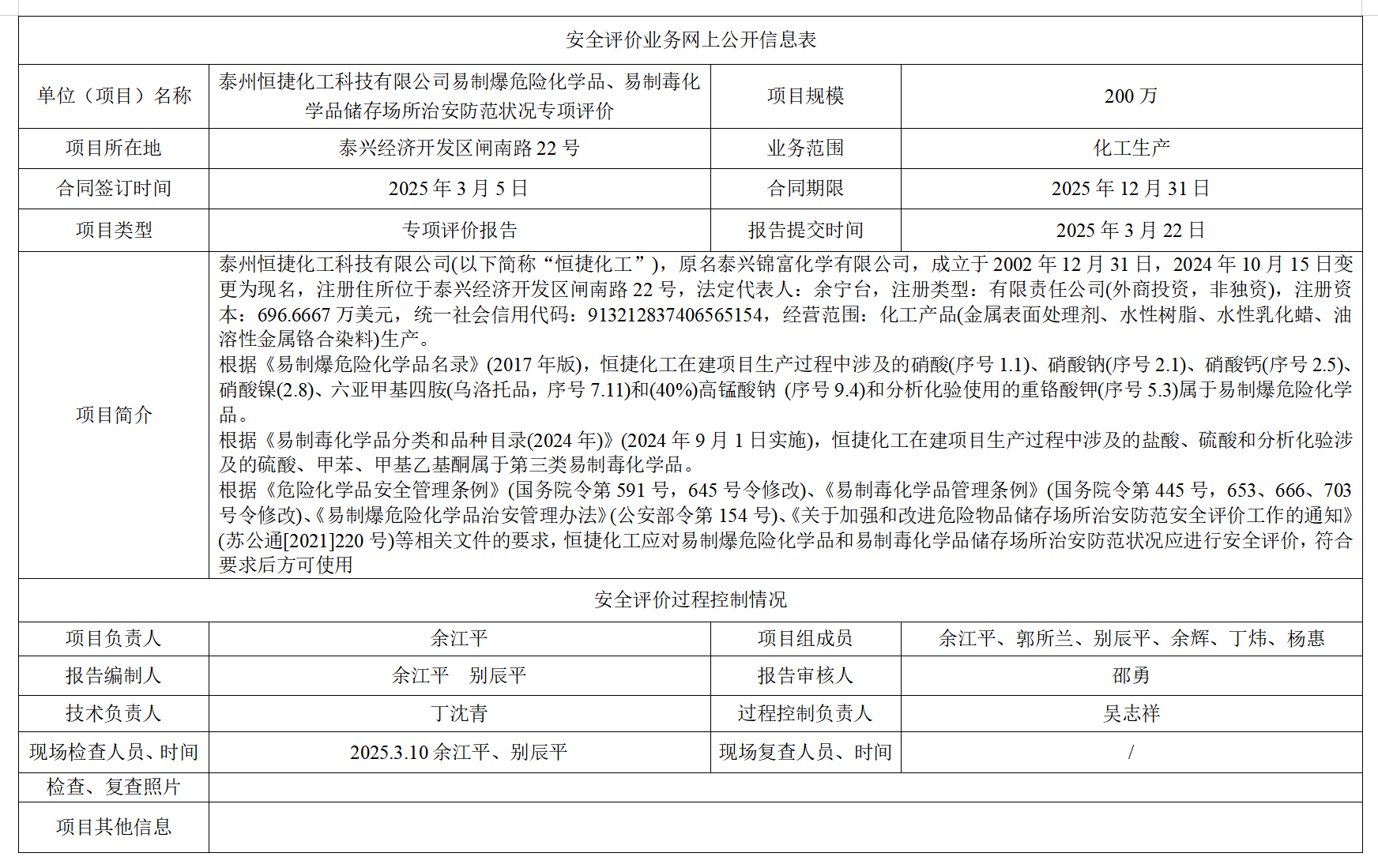 泰州恒捷化工科技有限公司易制爆危险化学品、易制毒化学品储存场所治安防范状况专项评价