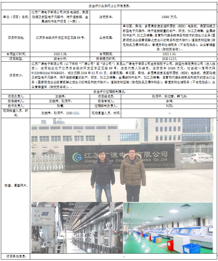 江苏广谦电子有限公司PCB电路板、表面贴装及新型电子元器件、端子连接器、金属结构件生产项目(一期)