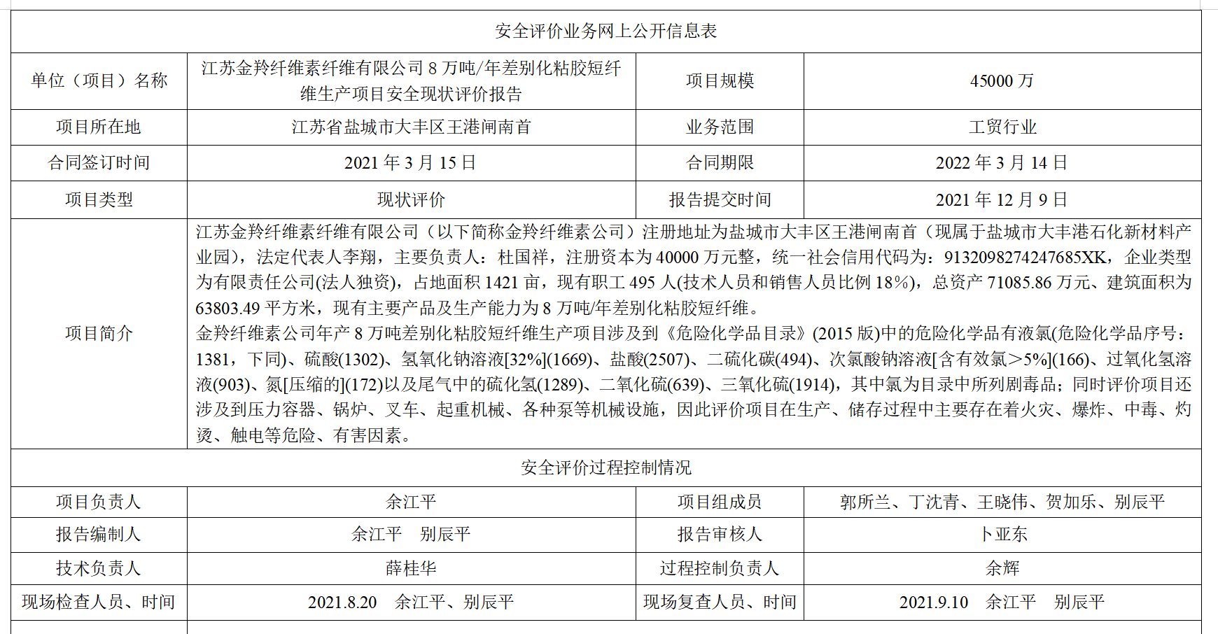 江苏金羚纤维素纤维有限公司8万吨/年差别化粘胶短纤维生产项目安全现状评价报告