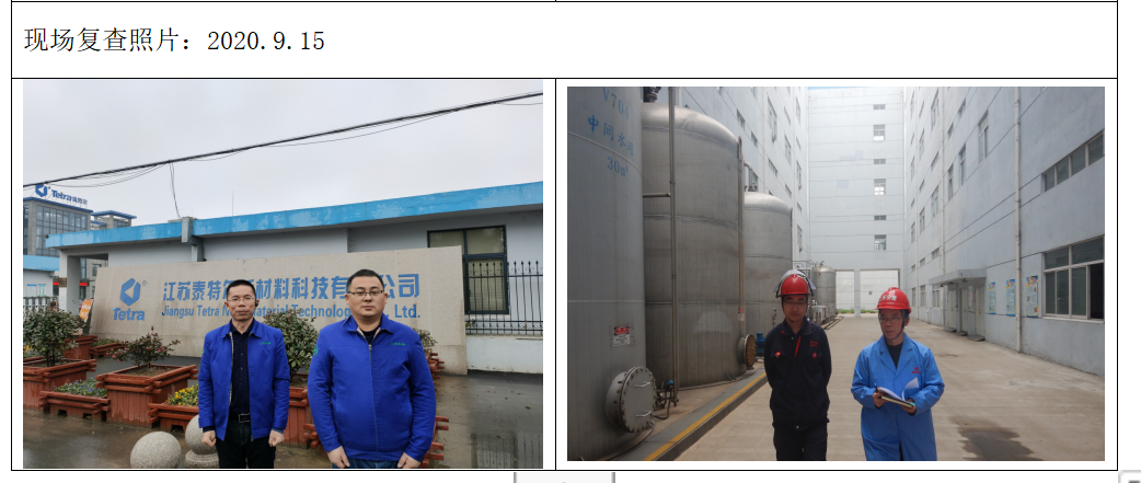 现场检查人员、时间 | 余江平、王晓伟,2020.9.12 | 现场复查人员、时间 | 余江平、王晓伟,2020.9.15 | ||