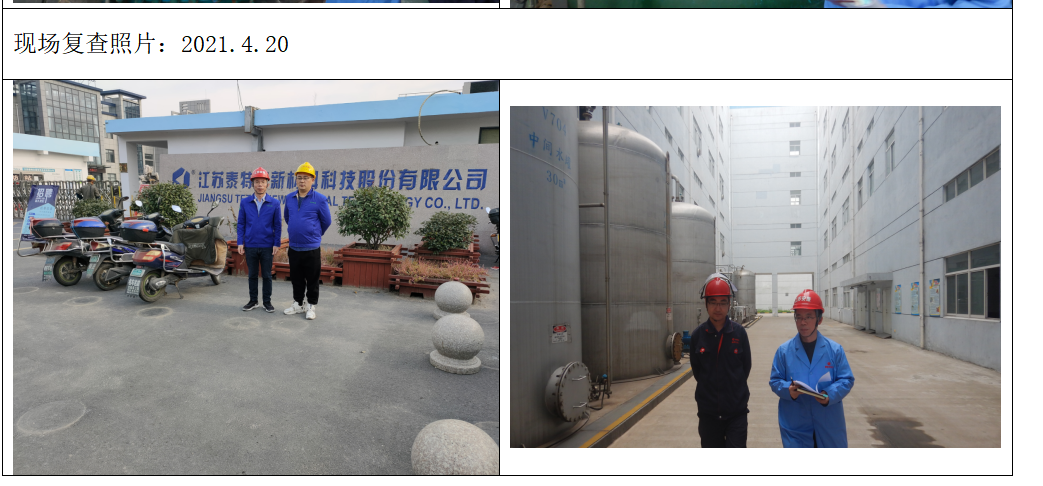 现场检查人员、时间 | 2021.4.7余江平、王晓伟、张慧、贺加乐、郭所兰、别辰平 | 现场复查人员、时间 | 2021.4.20余江平 王晓伟 |