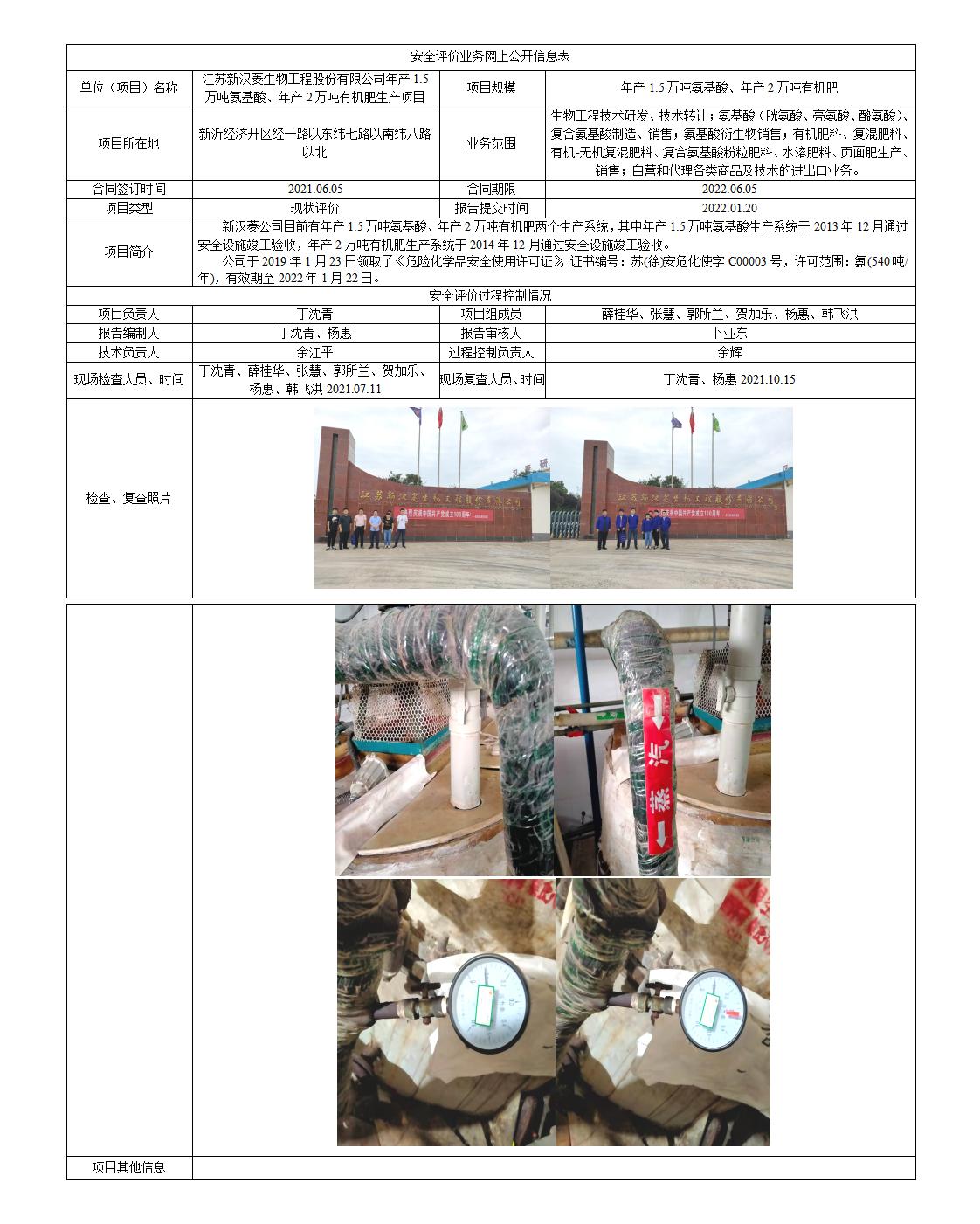 江苏新汉菱生物工程股份有限公司年产1.5万吨氨基酸、年产2万吨有机肥生产项目