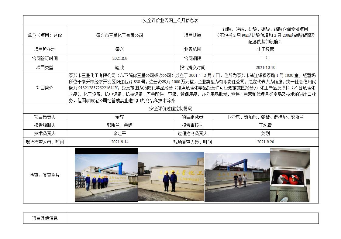泰兴市三星化工有限公司硫酸、液碱、盐酸、硝酸、磷酸仓储物流项目 (不包括2只90m3盐酸储罐和2只200m3硝酸储罐及配套的装卸设施)
