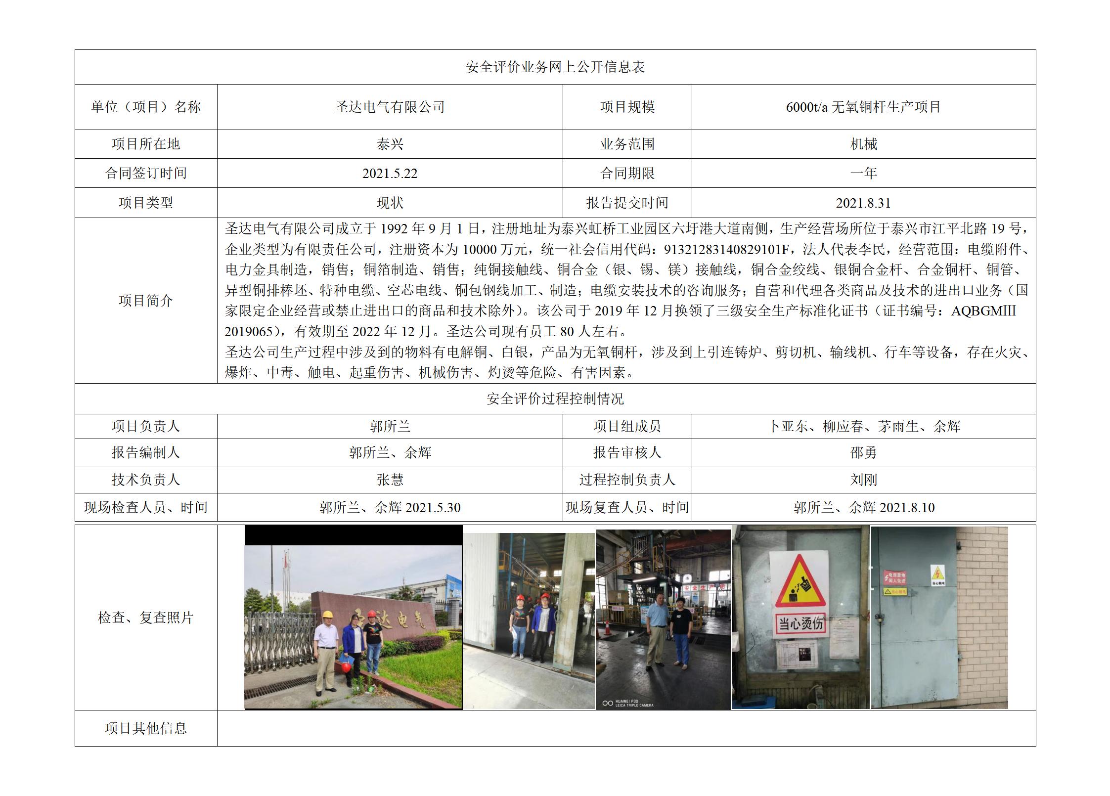 圣达电气有限公司6000t/a无氧铜杆生产项目