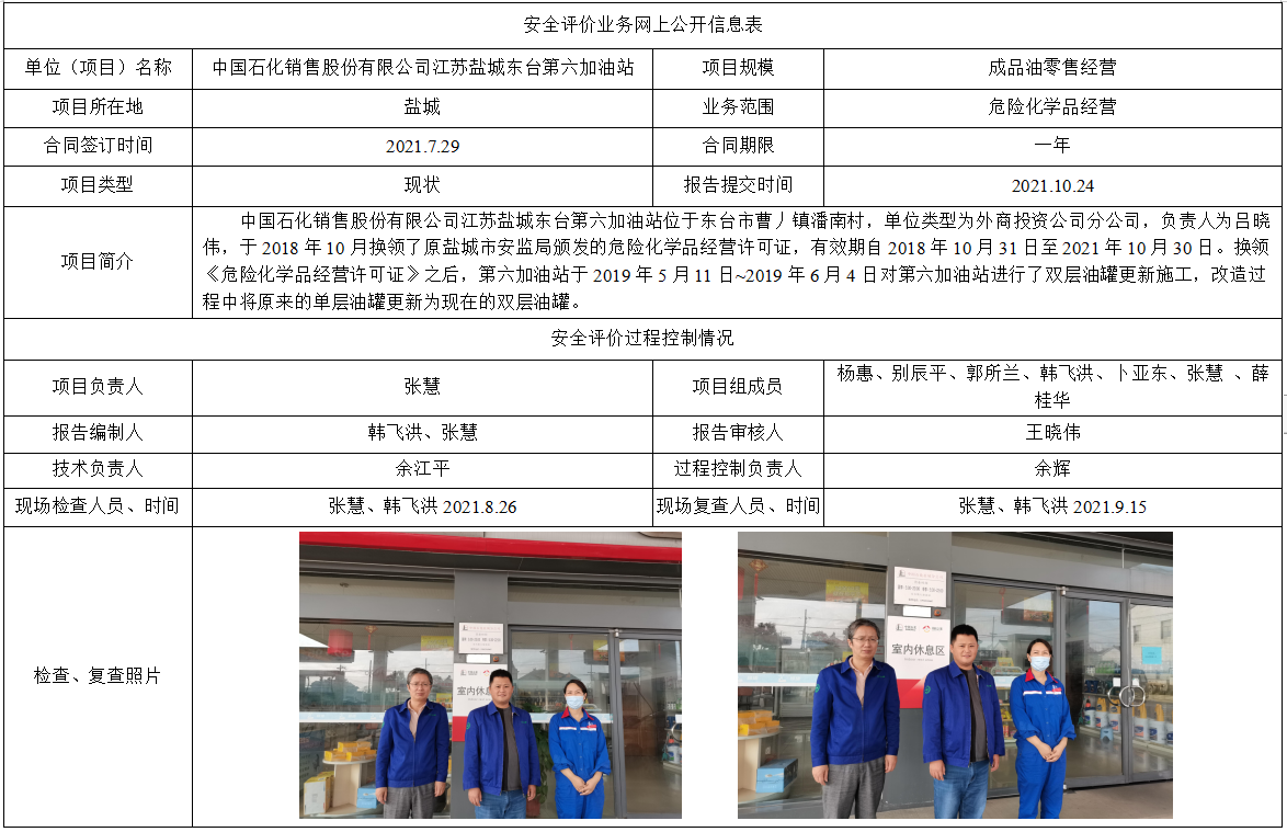 中国石化销售股份有限公司江苏盐城东台第六加油站