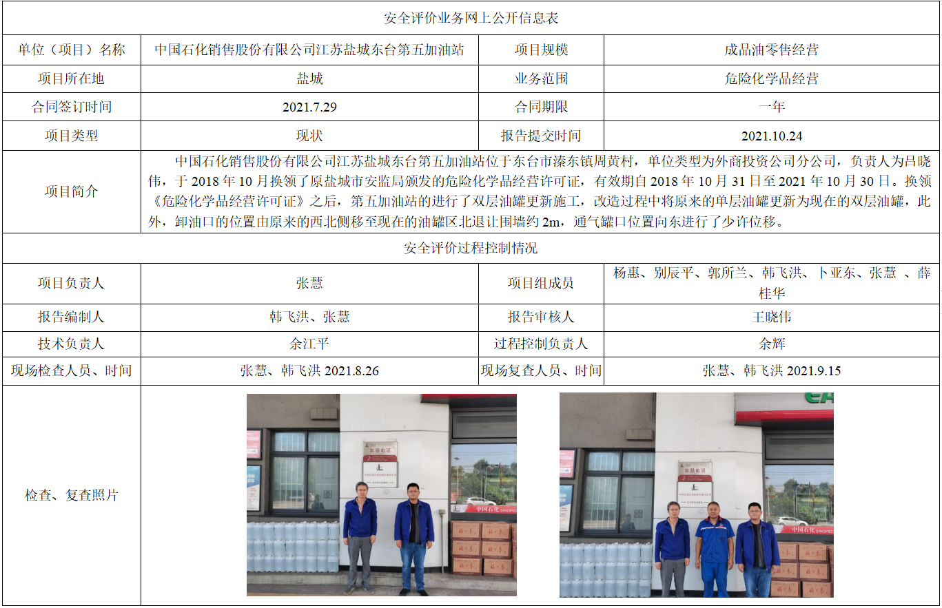 中国石化销售股份有限公司江苏盐城东台第五加油站