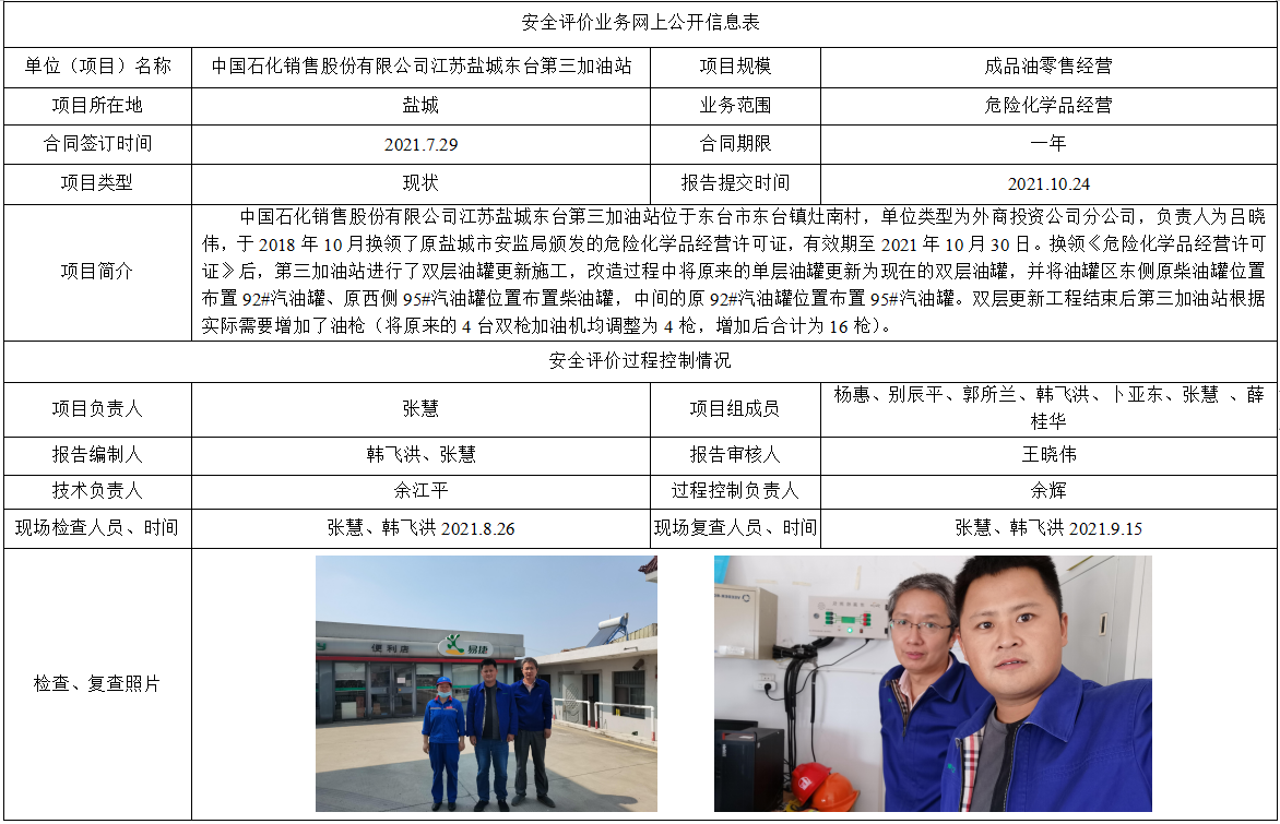 中国石化销售股份有限公司江苏盐城东台第三加油站