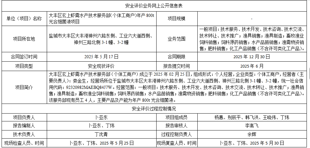 大丰区玄上虾需水产技术服务部(个体工商户)年产800t光合细菌液项目现状