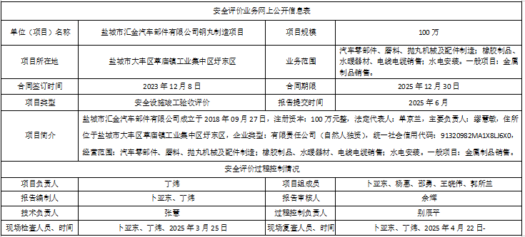 盐城市汇金汽车部件有限公司钢丸制造项目验收