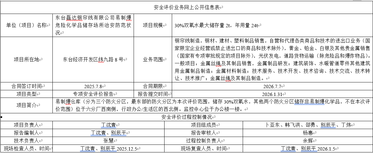 东台磊达钢帘线有限公司易制爆危险化学品储存场所治安防范状况专项安全评价报告
